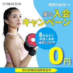 架空のフィットネスジムが行う夏の入会キャンペーン用のバナーを制作しました。 バナーには、筋トレ中の女性の画像を使用し、夏っぽいデザインで仕上げました。フィットネスジムの力強さを表現しました。